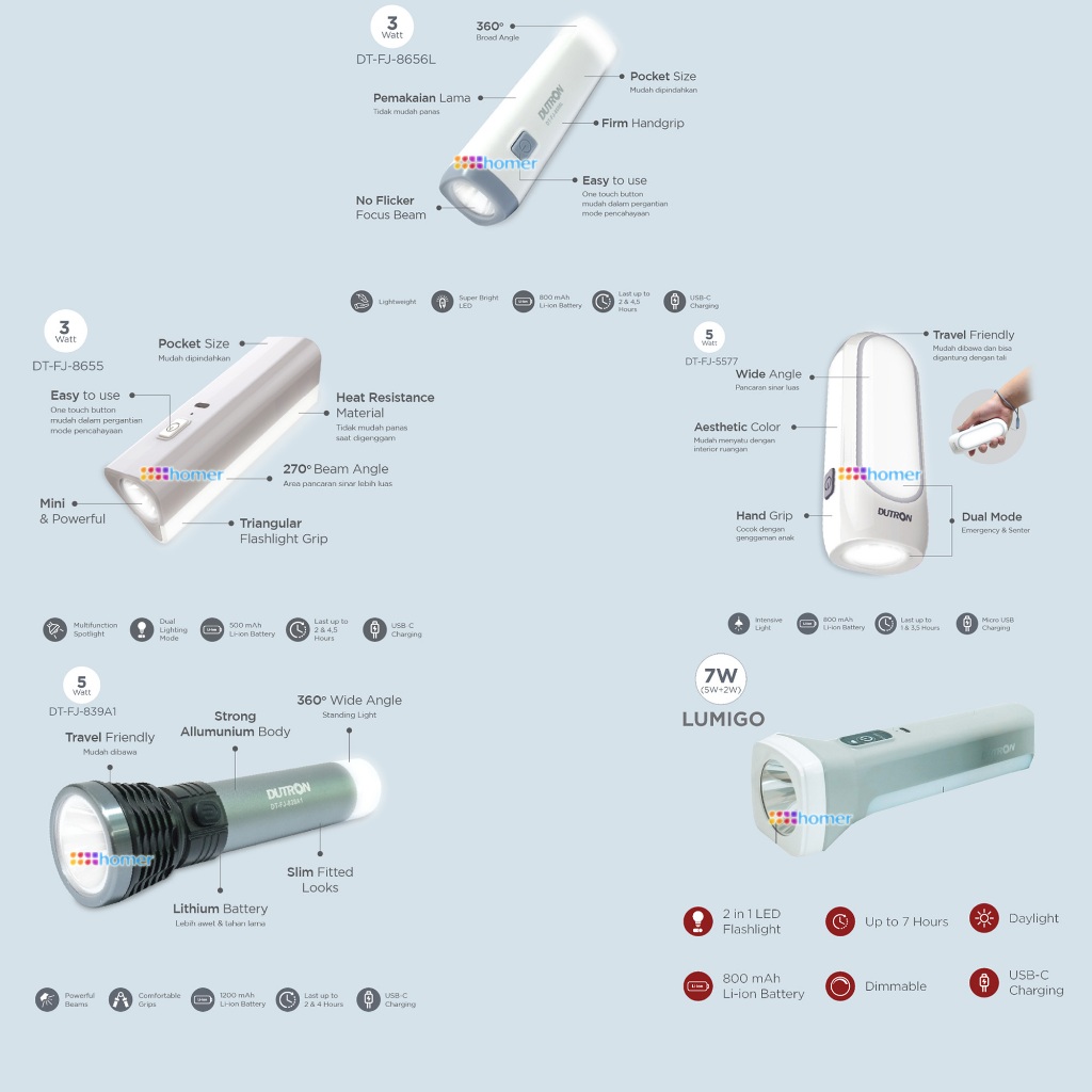 DUTRON SENTER LED TANGAN EMERGENCY FLASH LIGHT SEGITIGA PERSEGI PANJANG KOTAK MINI SIZE BERDIRI 2 IN 1 LAMPU DARURAT