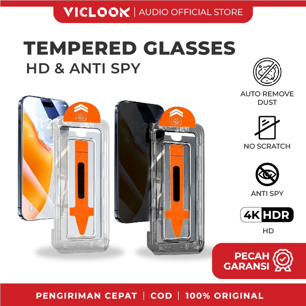 VICLOOK Easy Install Tempered glass Anti SPY HD Clear Fit for iPhone 11/12/13/14/15/16/X/XR/XS Mini Max Pro Plus