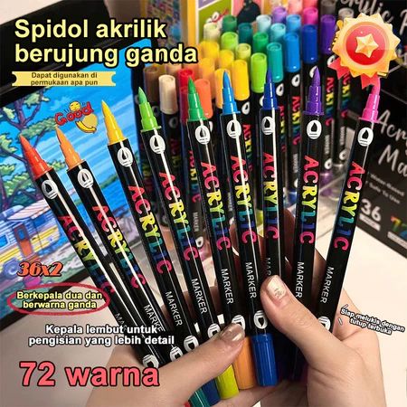 Spidol Warna Set Acrylic Marker Dual Head Watercolor Drawing Pen 24/48/72 Quick-drying Spidol Akrilik - 48 Warna