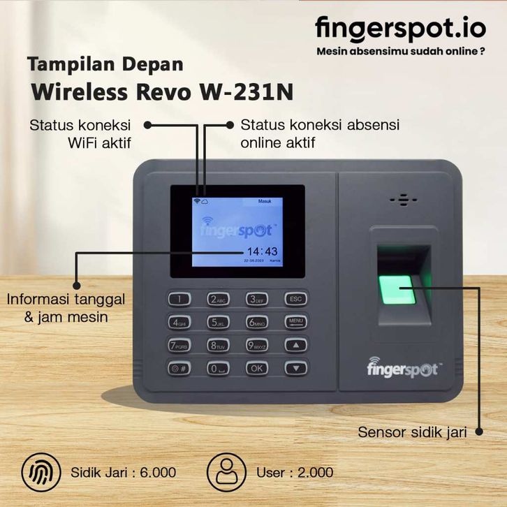 Fingerspot Revo W-231N - Mesin Absensi Sidik Jari WiFi/LAN Online