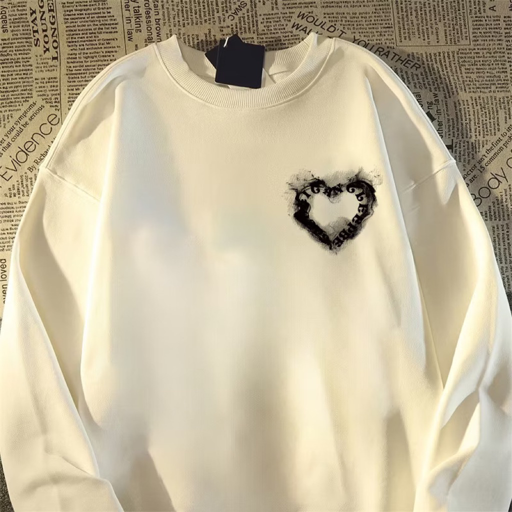 SMOKE HEART SWEATER OBLONG CREWNECK OVERSIZE WANITA