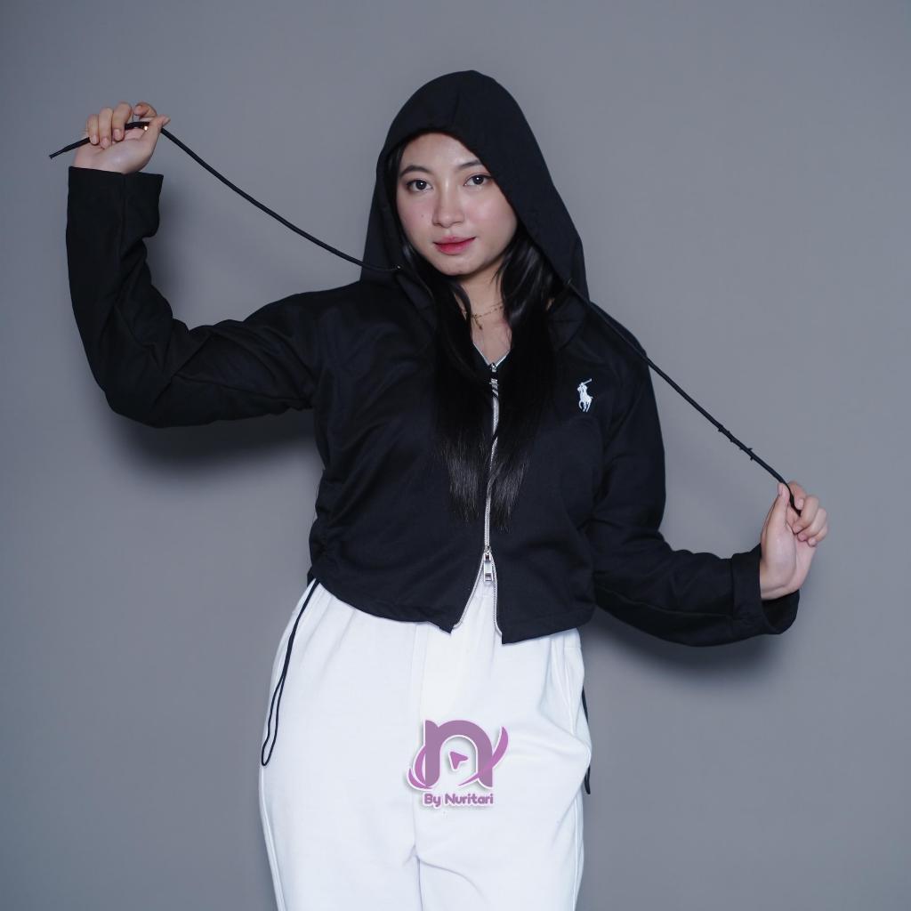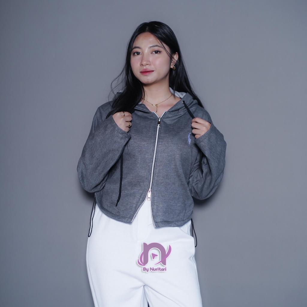 KUDHA CROP HOODIE ZIPPER DOUBLE BORDIR OLOP JACKET OUTWEAR OUTER REMAJA DEWASA