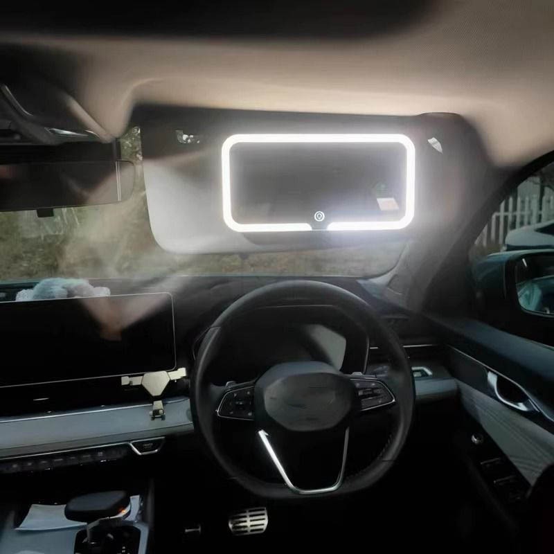 XYKJ Besar Cermin Makeup Dengan Lampu Mobil Led Layar Sentuh Dapat Disesuaikan Untuk Sun Visor Mobil