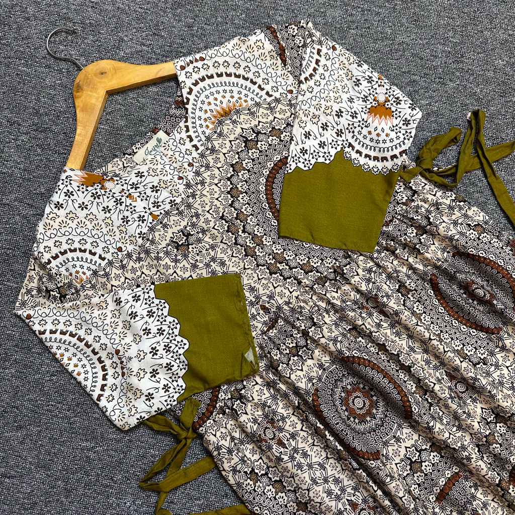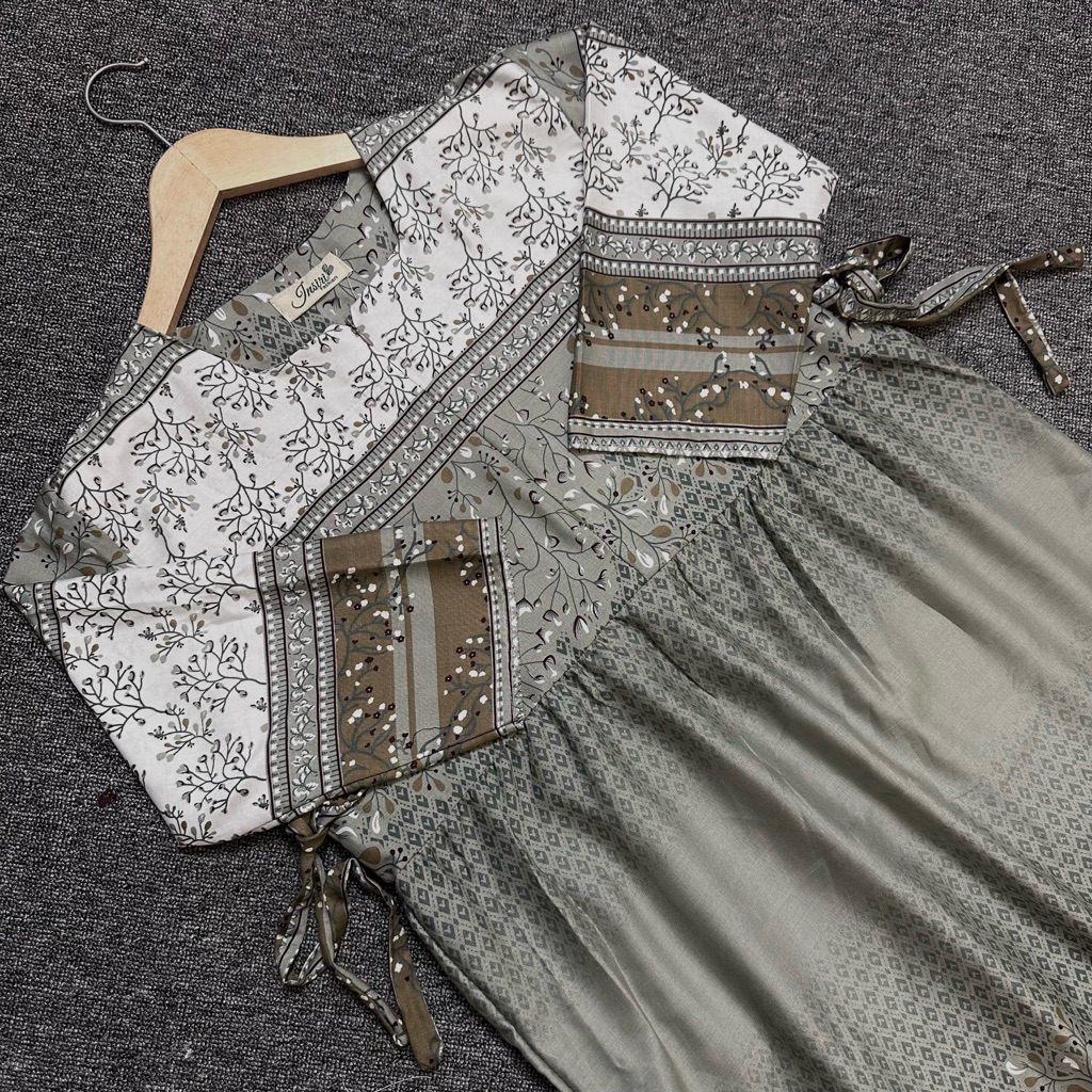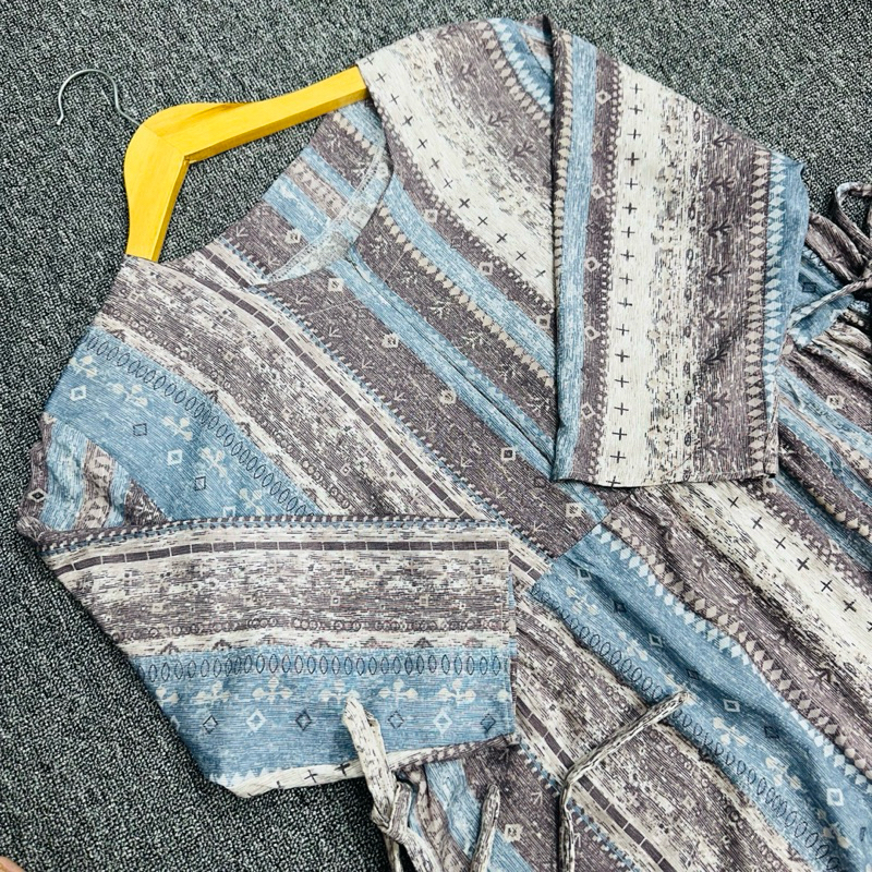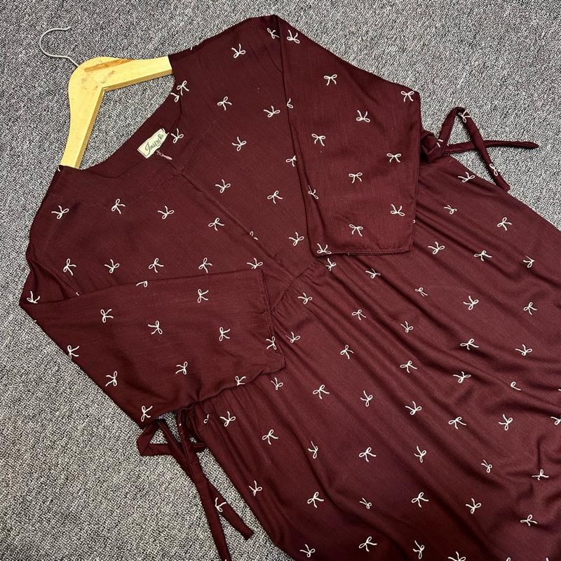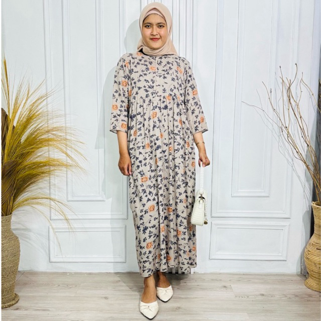 LEVI DRESS RUFFLE DASTER TANGAN 3/4 RAYON MOTIF REMPEL DADA TERBARU