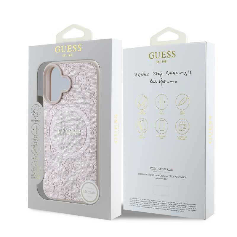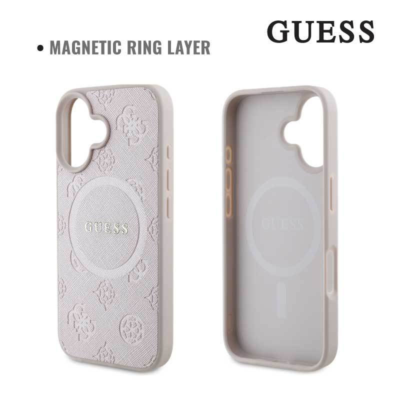 CASE FOR IPHONE 16 SERIES GUESS MAGSAFE SAFFIANO PEONY PREMIUM QUALITY