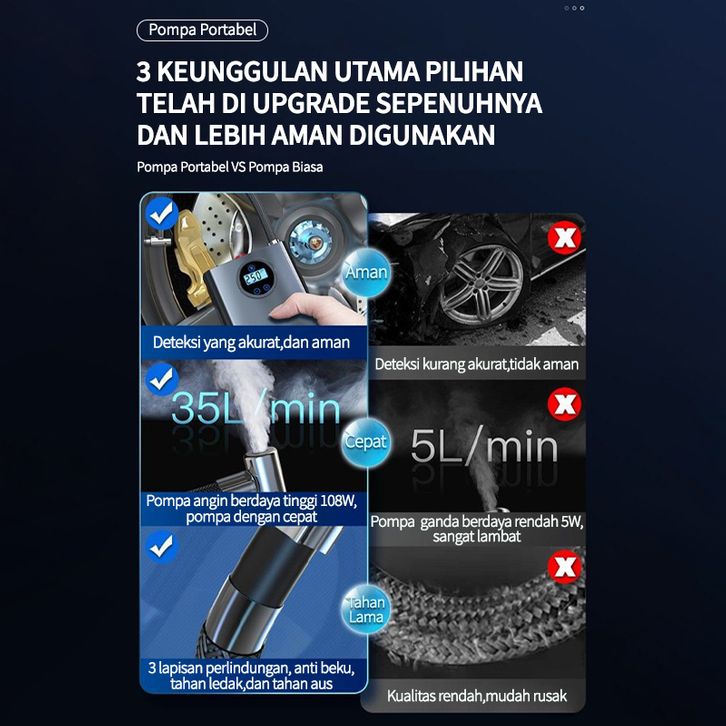 LiVing Pompa Ban Cerdas Portable Multifungsi/Alat Penguji Tekanan Ban Cerdas / Pompa Ban 108W / Pemeriksaan