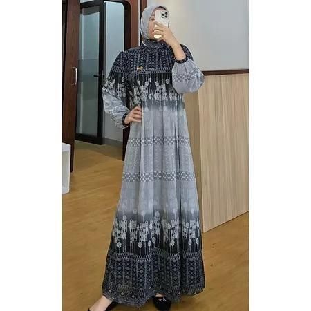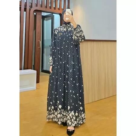 Baju Gamis Lebaran Ramadhan Idul Fitri Idul Adha Terbaru Set Kerudung Dress Muslim Syari Wanita Perempuan Baju Gamis Ac