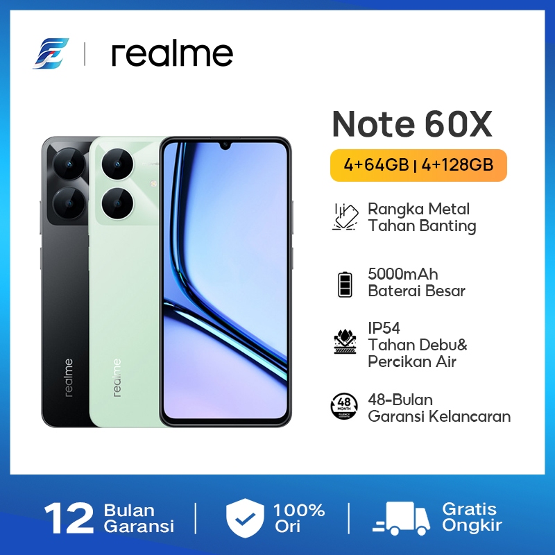 Realme Note 60x 4+64GB/4+128GB Rangka Metal Tahan Banting | Baterai Besar 5000mAh | Tahan Debu dan Percikan Air