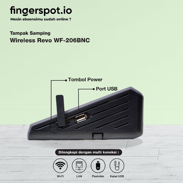 Fingerspot Revo WF-206BNC - Mesin Absensi WiFi/LAN Online Wajah, Sidik Jari, Kartu + Batre Internal