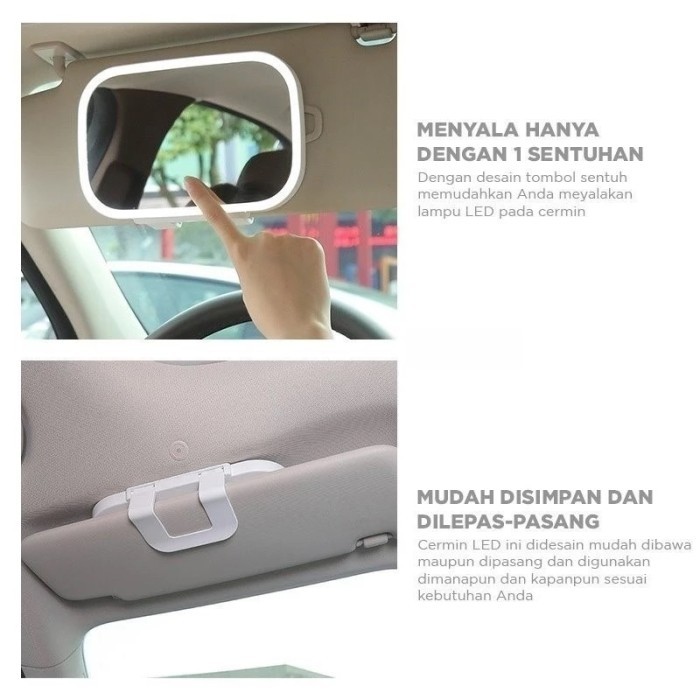 Cermin Rias LED 5w Layar Sentuh Tambahan Jepit Sun Visor Sunvisor Sunshade Makeup Kaca Mobil Vanity Mirror Car Touchscre