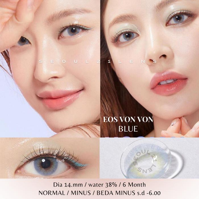 FLASH SALE SOFTLENS EOS VONVON BLUE BIRU 800 DIAMETER 14MM KADAR AIR 38 PERSEN MASA PAKAI 6 BULAN EYE LENSA COKLAT SOFLEN BROWN BLUEBIRU MINUS