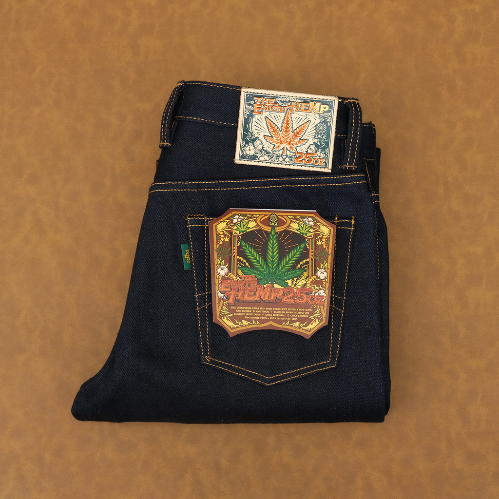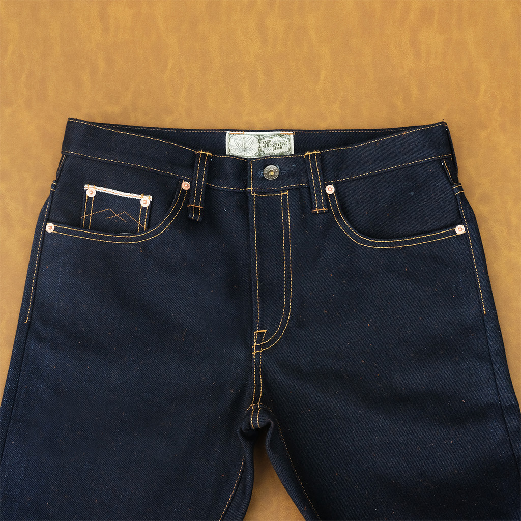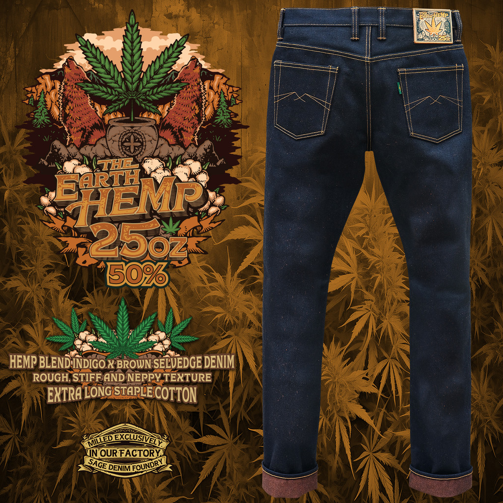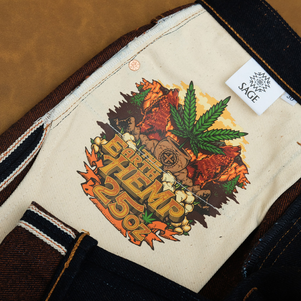DENIM SAGE THE EARTH HEMP 25OZ 50% HEMP BLEND DEEP INDIGO X BROWN SELVEDGE DENIM