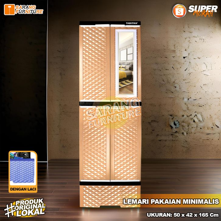 Tabitha LS2PL - Lemari Pakaian Plastik Gantung dengan Laci Lemari Pintu Rak Serbaguna dan Cermin BY ORIGINAL PRODUCT