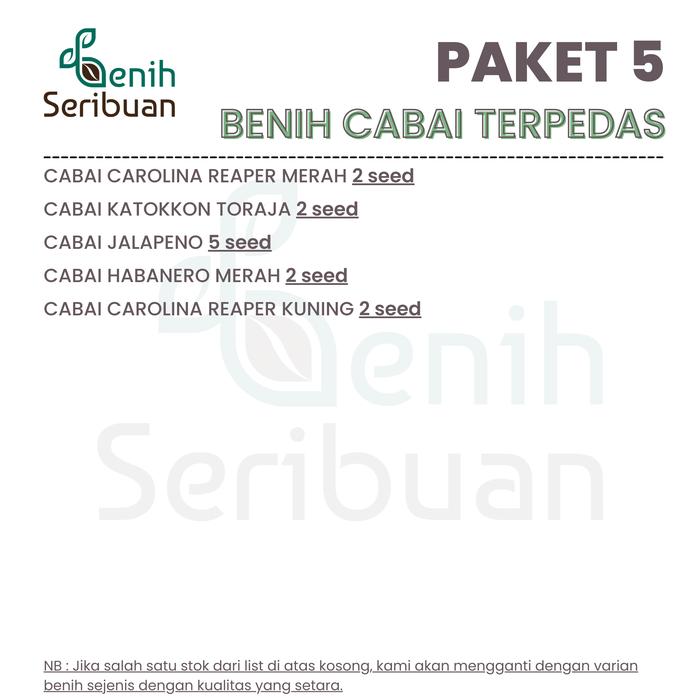 Benih Cabe Pedas 5 Macam Benih Cabai Seribuan Pedas - PAKET 5 CABE TERPEDAS