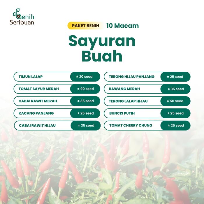 Benih Sayuran Paket 10 Macam Benih Sayur Buah F1 Hibrida Seribuan - PAKET 10 SAYURAN BUAH HIBRIDA
