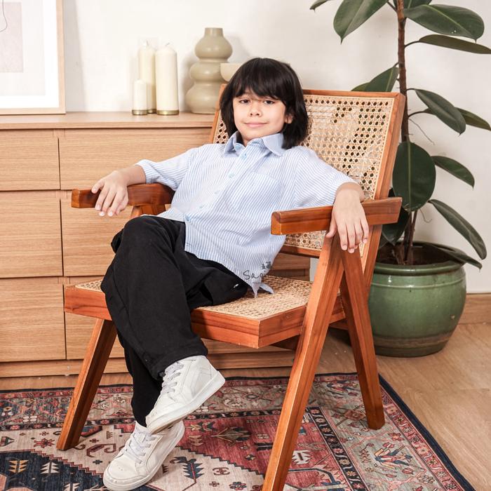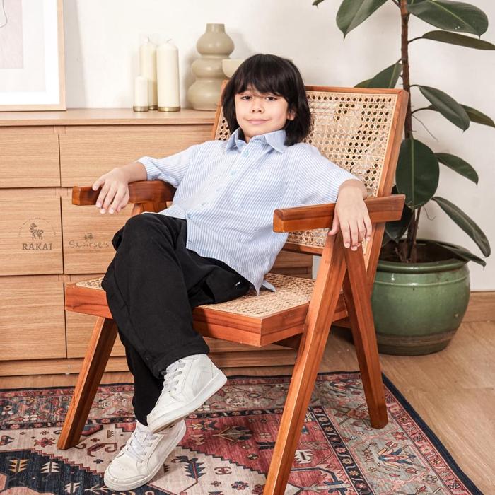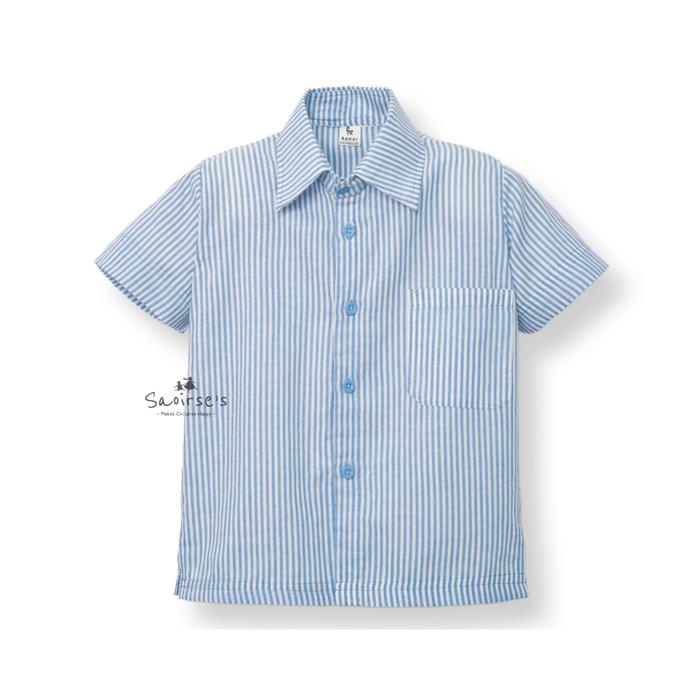 FLASH SALE SAOIRSE'S SB RAKAI STEVE KEMEJA BAHAN KATUN MOTIF GARISSTRIP SALUR SOFT BLUE TRENDY FASHION ANAK LAKILAKI LENGAN PENDEK SHIRT SOFT BLUE 2