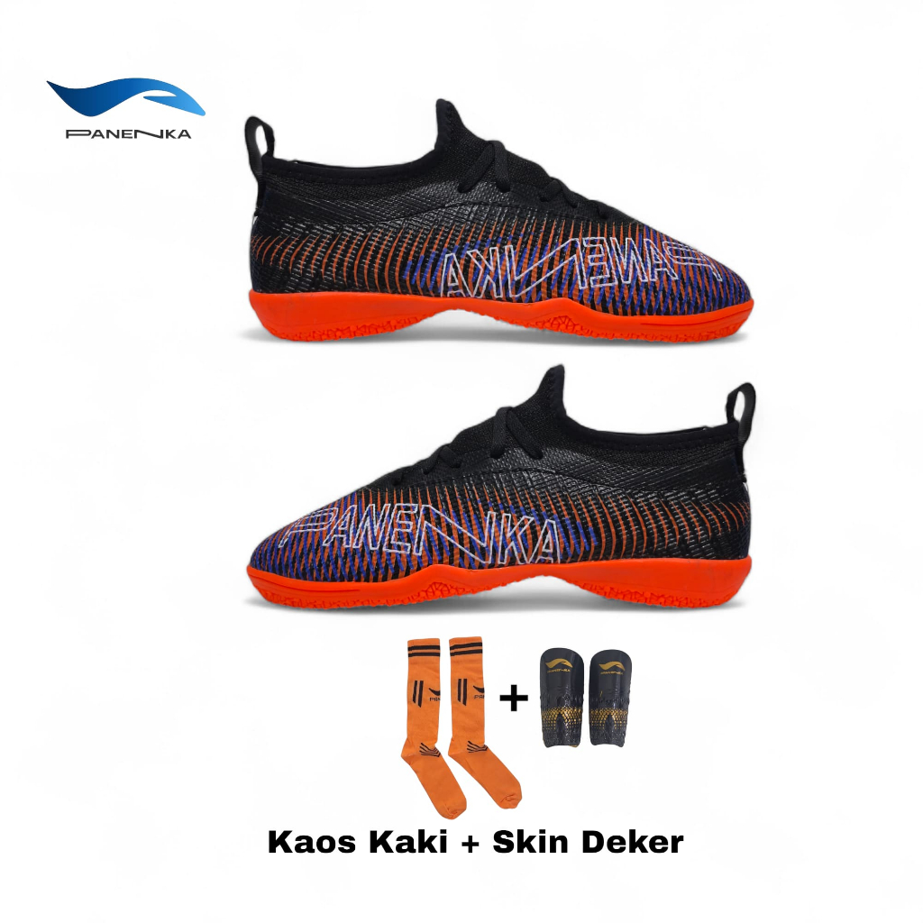 PANENKA - Paket Komplit 3 Set Sepatu Futsal Anak Laki Laki Bonus Kaos Kaki Deker