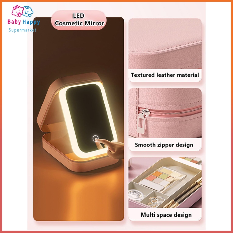 KOTAK PENYIMPANAN KOSMETIK 3 WARNA CERMIN RIAS DENGAN LAMPU LED SET PERJALANAN TAHAN AIR TAHAN DEBU