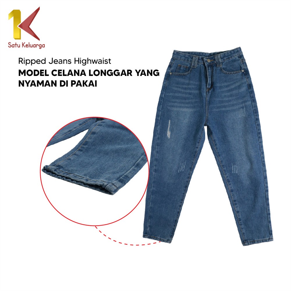 1K BOYFRIEND RIPPED JEANS HIGH WAIST WANITA CELANA PANJANG LONGGAR P526 JINS HW LOOSE JEANS SOBEK KEKINIAN DENIM PANTS
