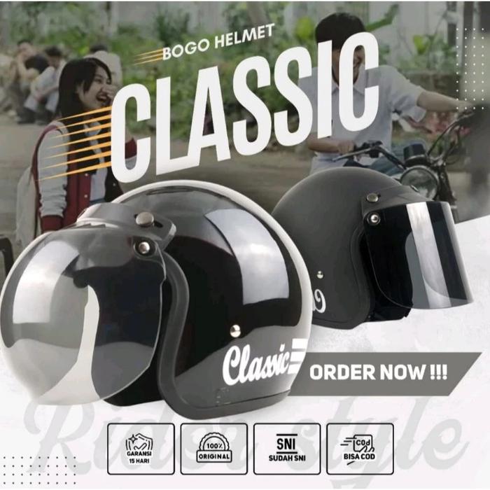 FLASH SALE HELM BOGO DEWASA RETRO CLASSIC KUALITAS PREMIUM FREE PACKING KARDUS HITAM GLOSSY CEMBUNG SMOKE