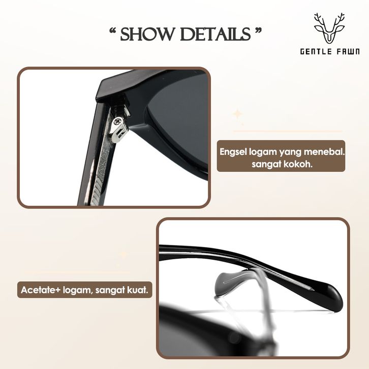 Gentle Fawn Kacamata Anti UV 400 Sunglasses Nylon HD Lens Style Cat Eye Semi Kotak Bahan TR90+Acetate Kuat Kokoh GF2 561