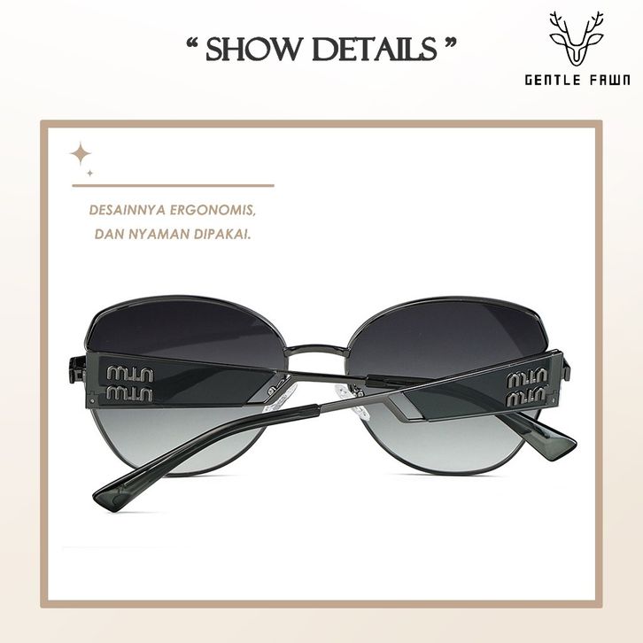 Gentle Fawn Kacamata Sunglasses Anti UV 400 Anti Silau Style Cat Eye Bahan Metal Kuat Kokoh Trendy Style Fashion Wanita