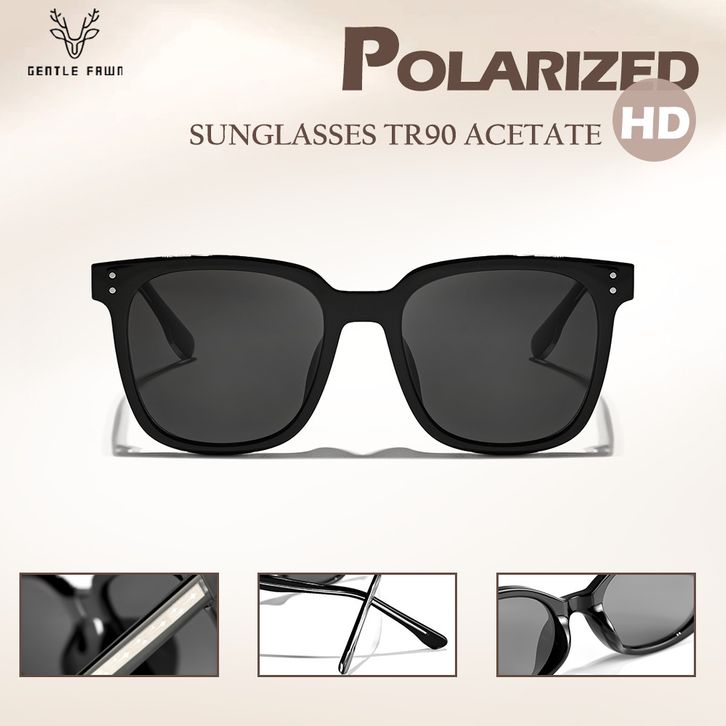 Gentle Fawn Kacamata Sunglasses Hitam Polarized Bentuk Kotak Bahan TR90+Acetate Kuat Kokoh Fashion Pria Wanita Trendy St