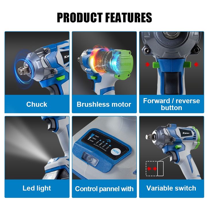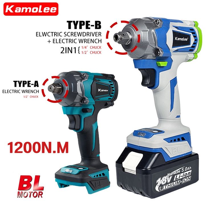 【New】Kamolee 1200N.M 1/2"1/4" Torsi Tinggi Beushless Kunci Pas Listrik (Kompatibel Dengan Baterai Makita)
