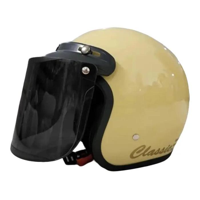 FLASH SALE HELM BOGO CLASSIC RETRO CREAM GLOSSY MOTORCYCLE HITAM GLOSSY CEMBUNG SMOKE