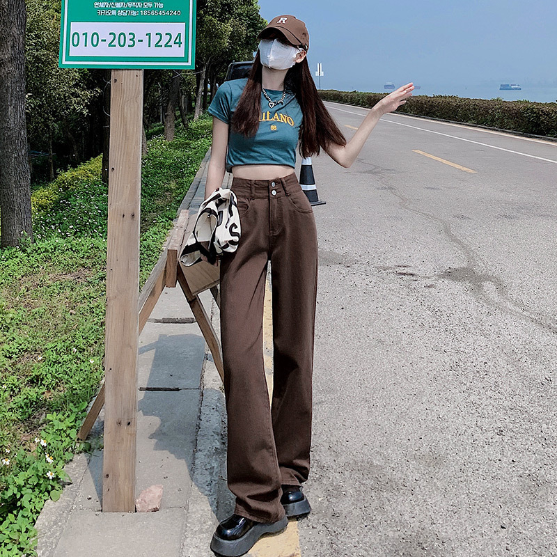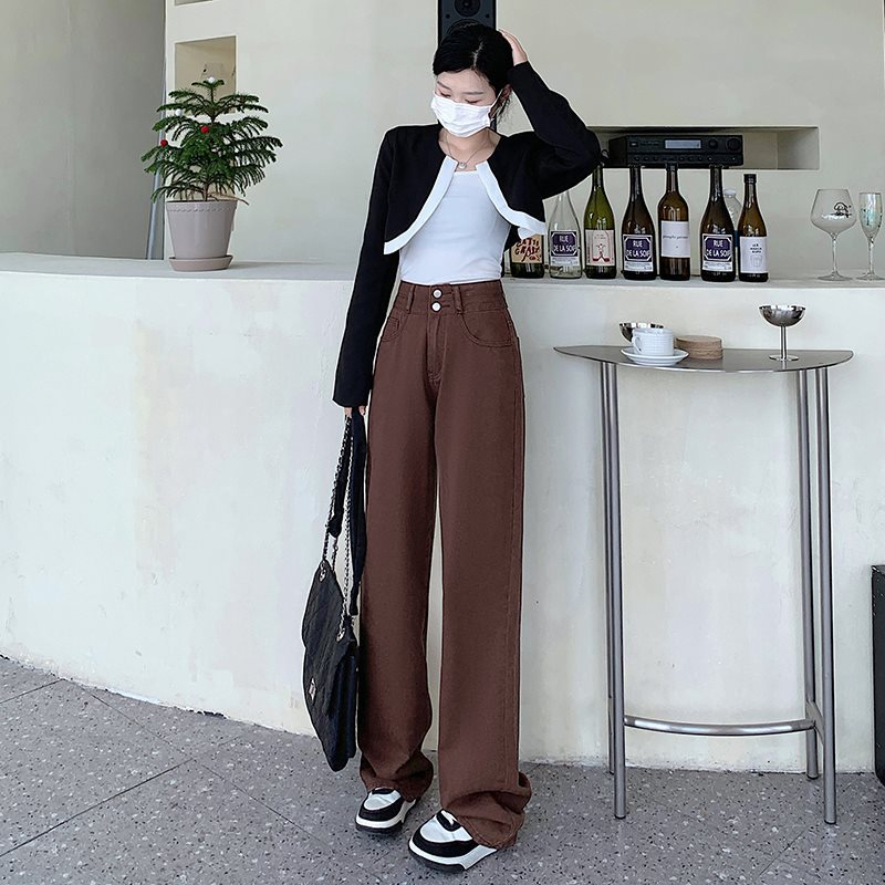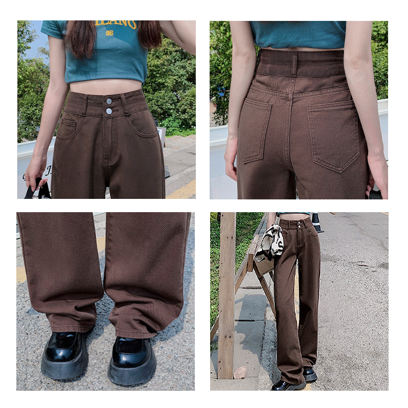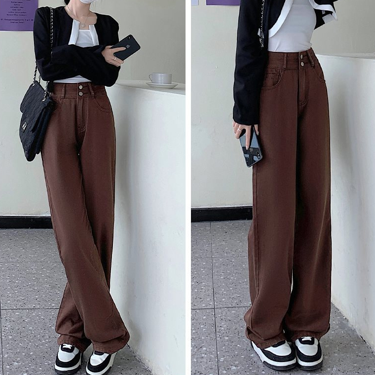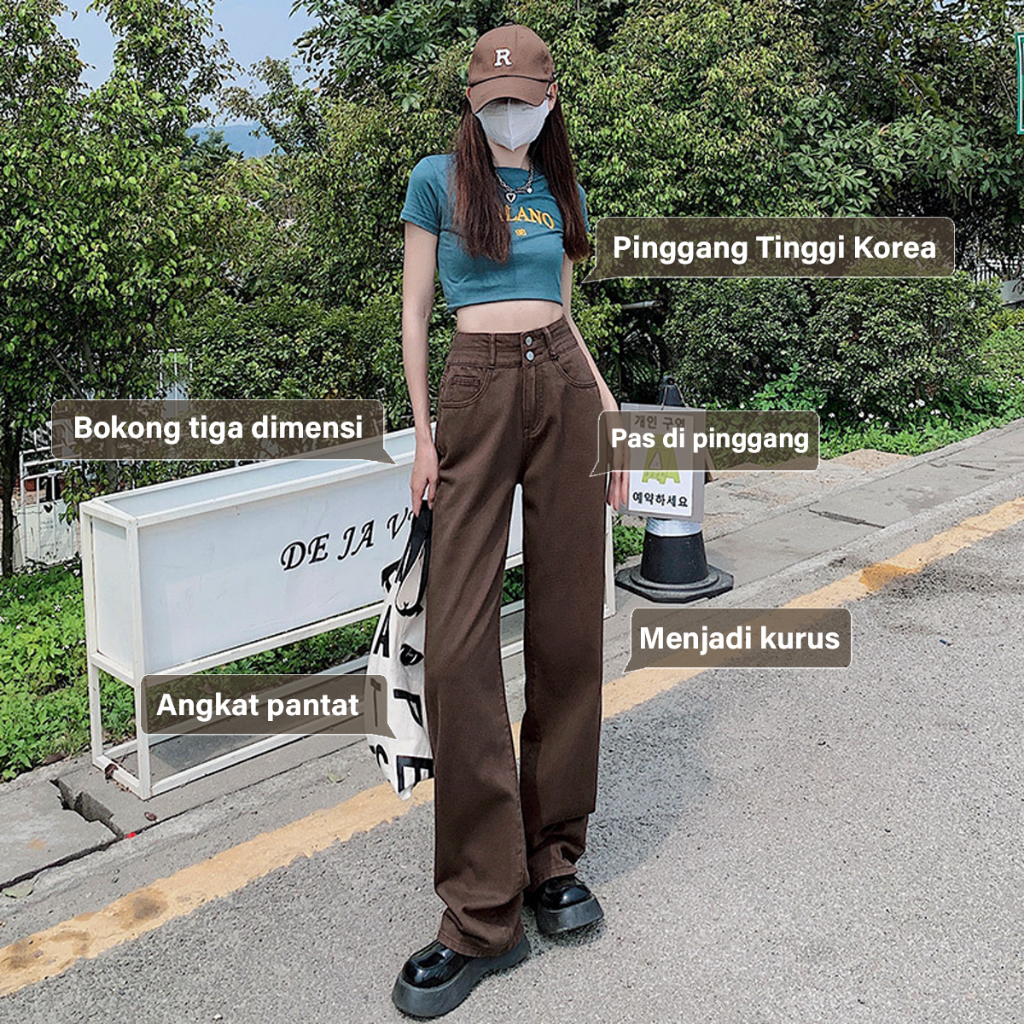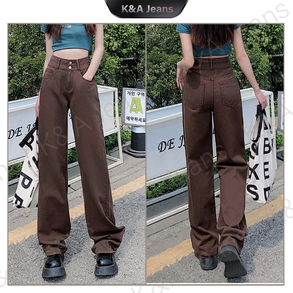 [K&A JEANS] JEANS LURUS PINGGANG TINGGI BERWARNA COKLAT / JEANS PELANGSING DAN SERBAGUNA