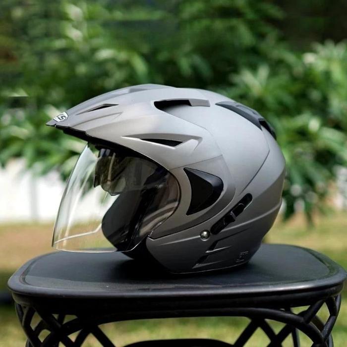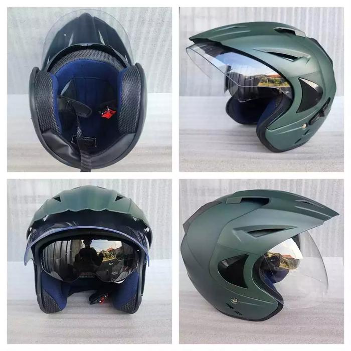 FLASH SALE HELM DOUBLE VISOR JP8 ABU DOFF POLOS HELM HALF FACE SNI PRIA WANITA HITAM GLOSSY