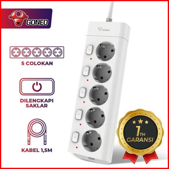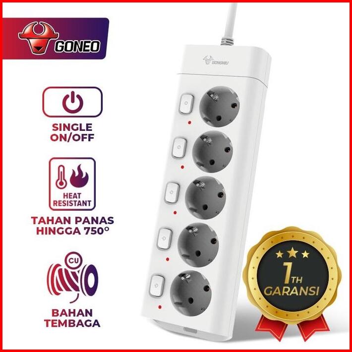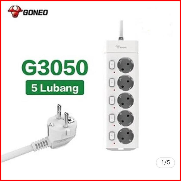 Goneo G3050 Stop Kontak Single On Off Power Strip 5 Lubang Kabel Sni