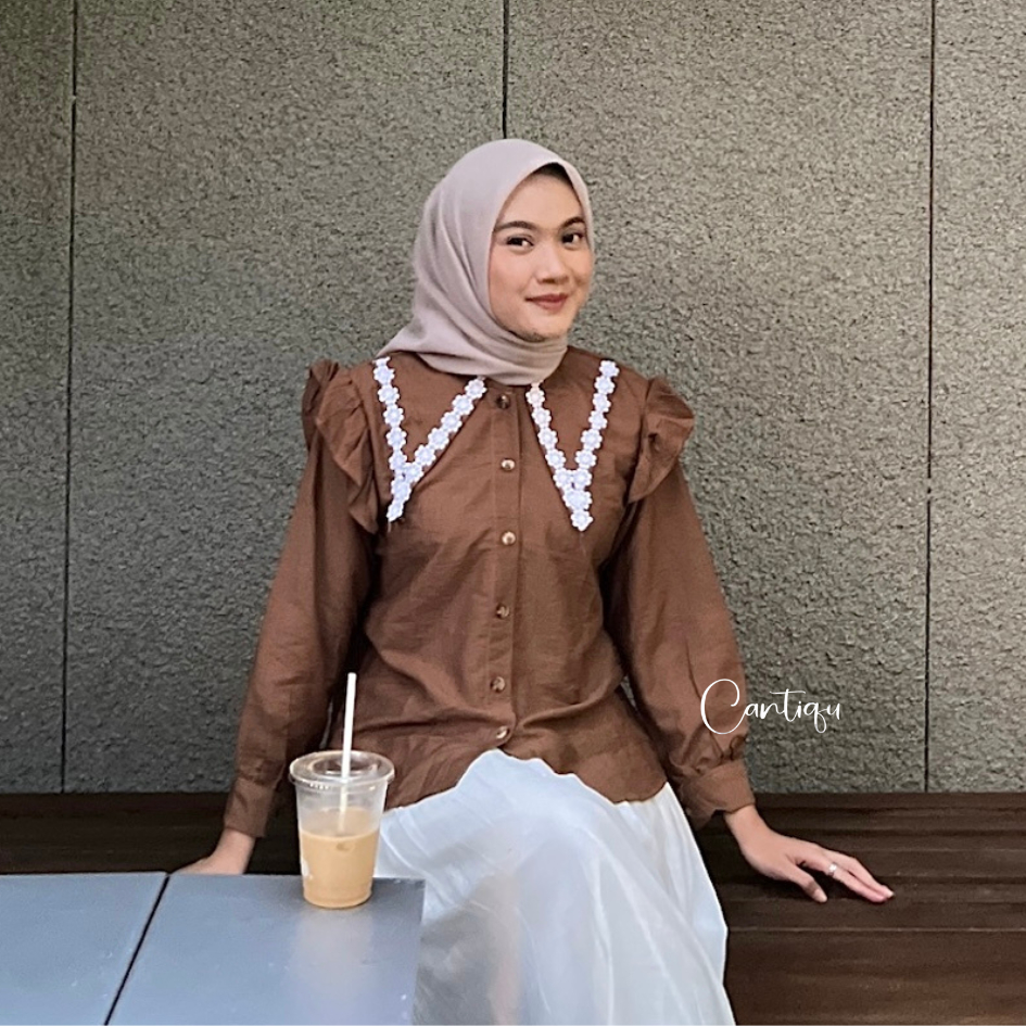 CANTIQU - BLOUSE MONY KEMEJA WANITA KERAH SAILOR RENDA ATASAN WANITA POLOLINEN