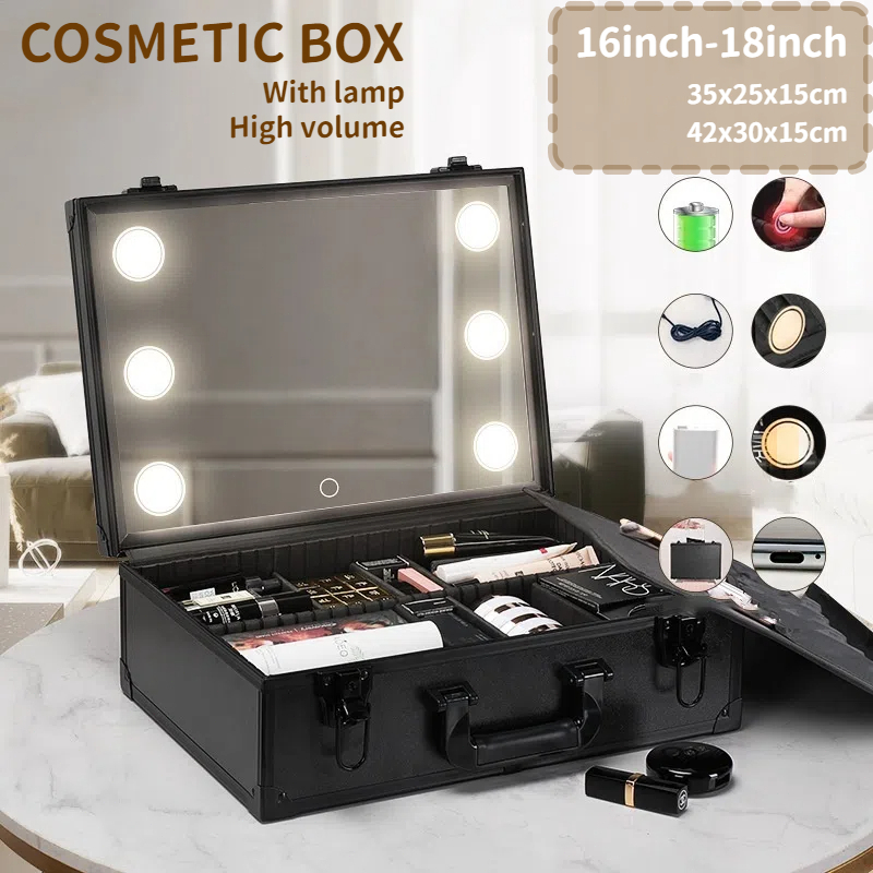 TAS MAKEUP LAMPU BEAUTY MAKEUP CASE FULL MIRROR BUILT IN LED/ MAKEUP LAMPU / LED MAKEUPARTIST BAG BEAUTY CASE/COSMETIC BOX