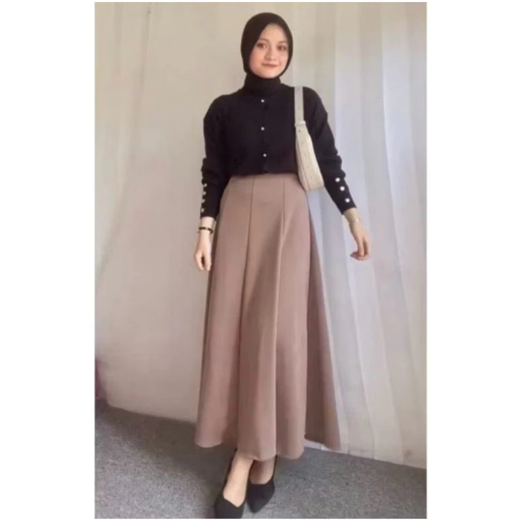 HARUKA SKIRT - KOREAN LOOSE MAXI SKIRT ROK WANITA ANTI KUSUT POLYESTER - ROK FLARE WANITA - ROK BASIK POLOS - MAXI SKIRT ROK MAYUNG PANJANG WANITA