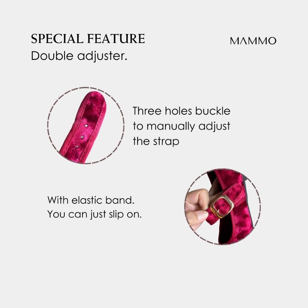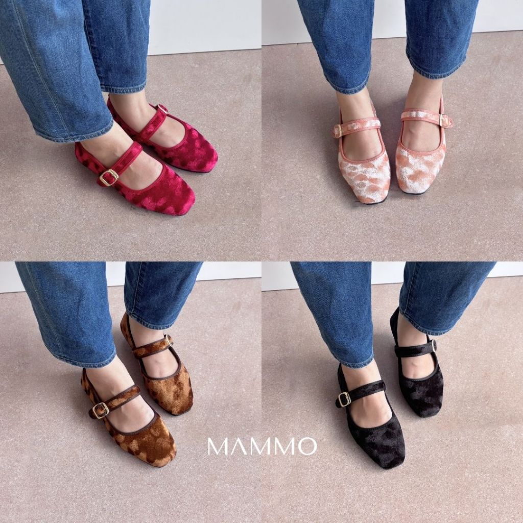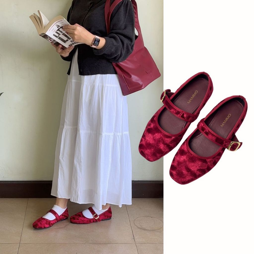 [Mall] SEPATU FLATSHOES WANITA MARY JANE VELVET ADJUSTABLE MAMMO NARA SERIES BLACK - PINK - BROWN - CHERRY