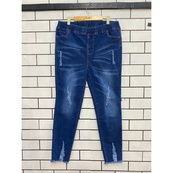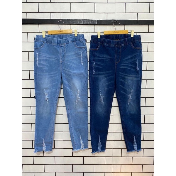 CELANA JEANS WANITA PINGGANG KARET LEJING MODEL SOBEK-SOBEK/CELANA WANITA JUMBO 27-42