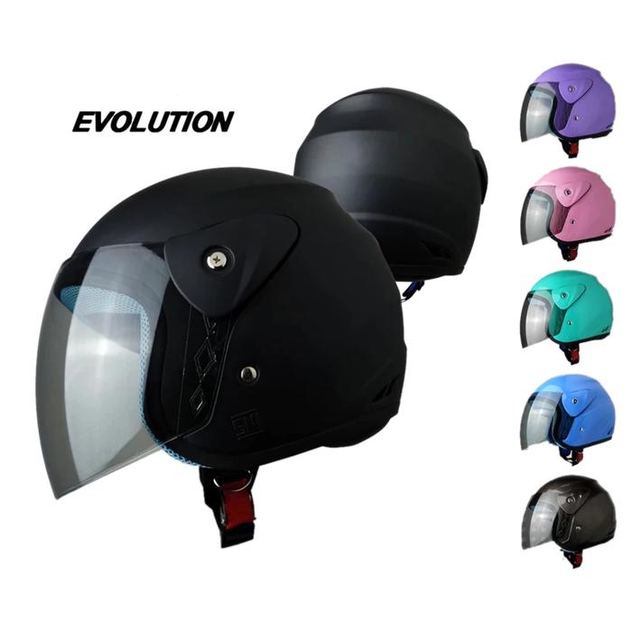 FLASH SALE HELM EVOLUTION WARNA PINK GLOSSY POLOS KACA VISOR SMOKE MOTORCYCLE HITAM GLOSSY
