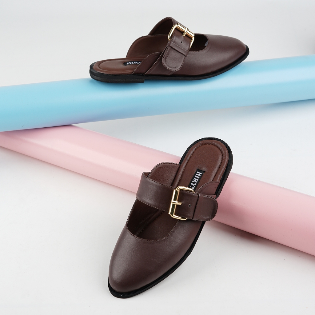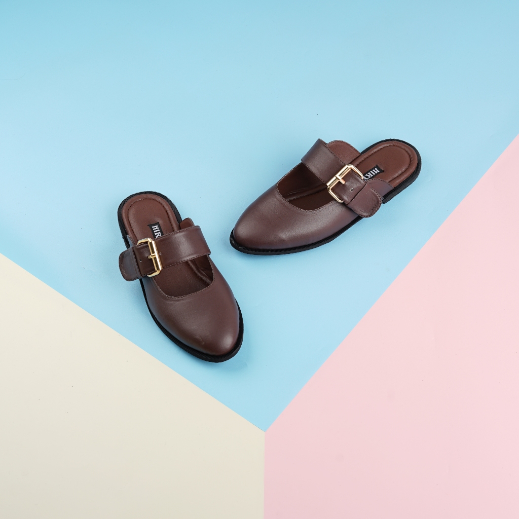 [Mall] SEPATU SANDAL MULES FLATSHOES WANITA HEELS HAK 2 CM VIENNA COKLAT HIRYN