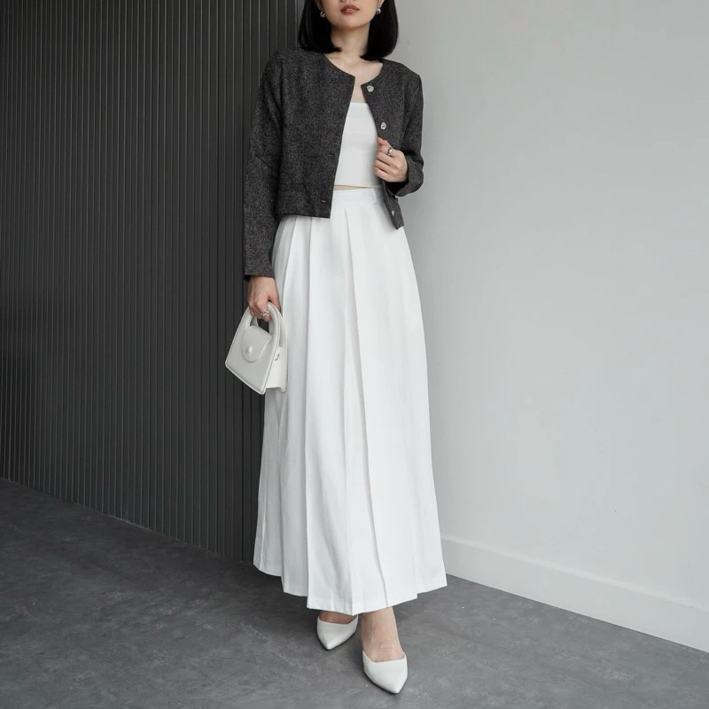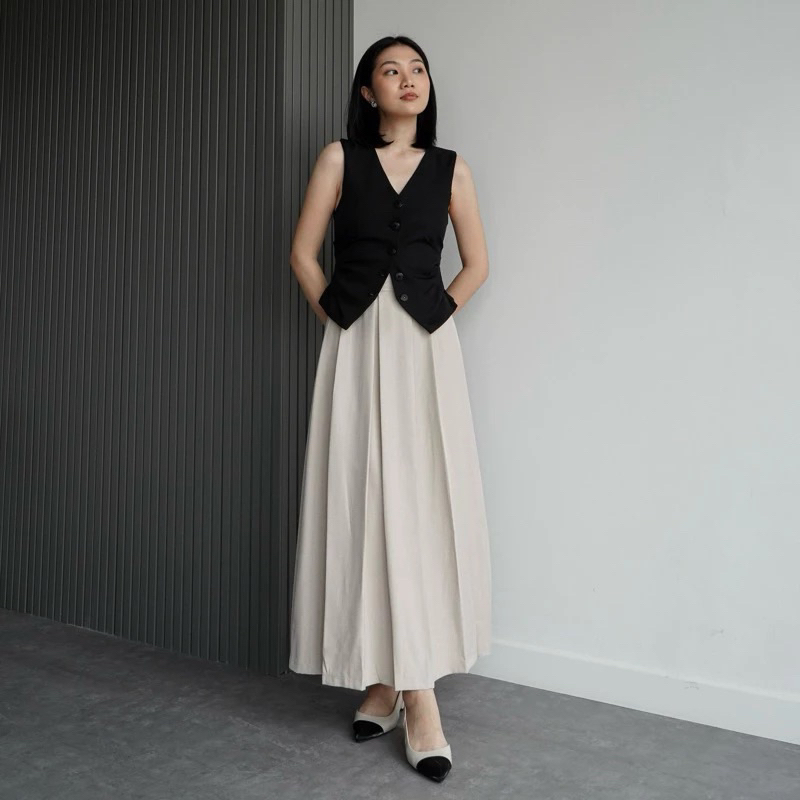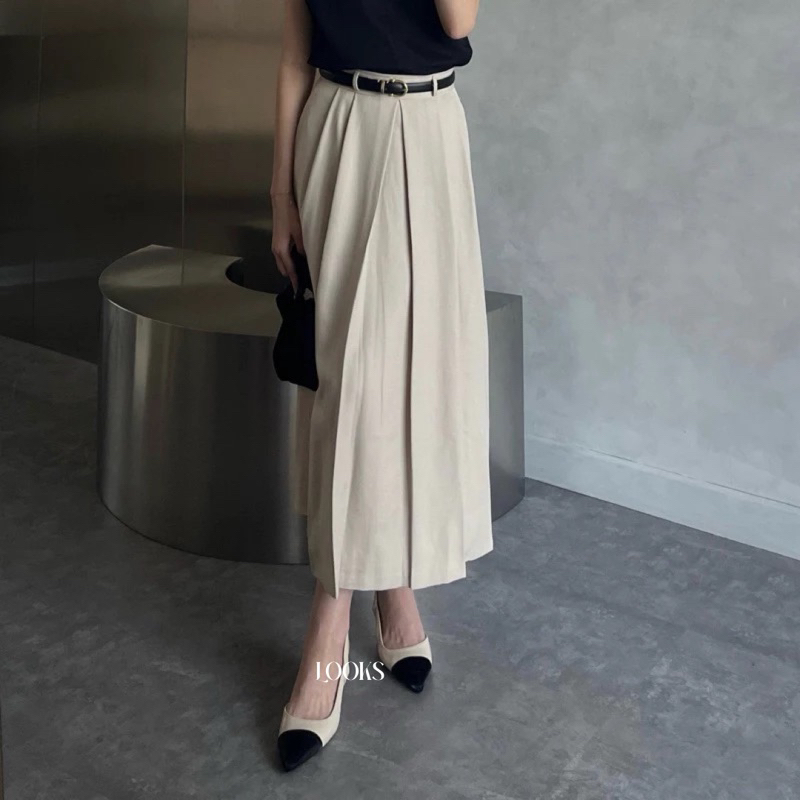 LOOKS2 SAVVA SKRIT / ROK MIDI SKRIT / ROK PANJANG POLOS / BAWAHAN WANITA / ROK WANITA KASUAL SEMI