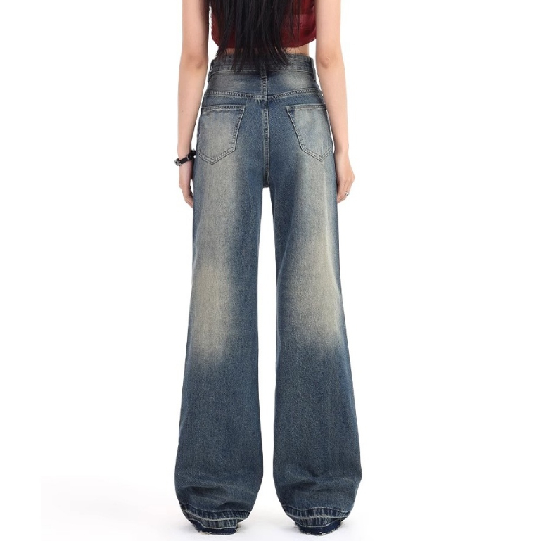 KEYGIRL BAGGY PANTS JEANS WANITA RETRO BIRU/CELANA JEANS WANITA KOREAN STYLE STRAIGHT LOOSE PANTS PREMIUM JUMBO
