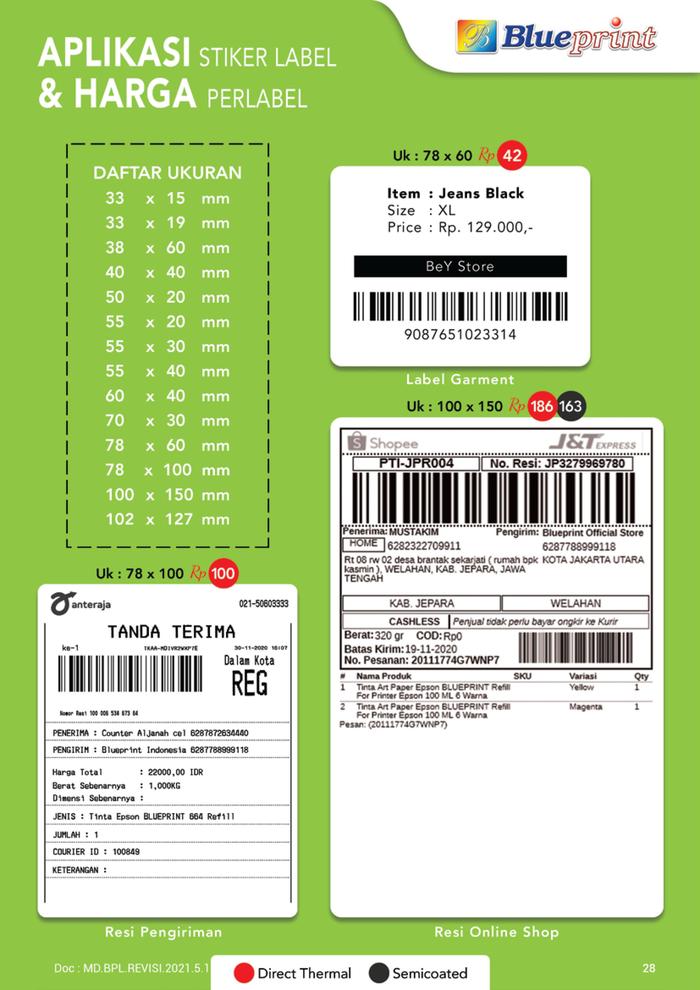 FLASH SALE DIRECT THERMAL STICKER LABEL RESI BLUEPRINT LITE 100X150 MM 500PCS CF LITE 100X150500 CF
