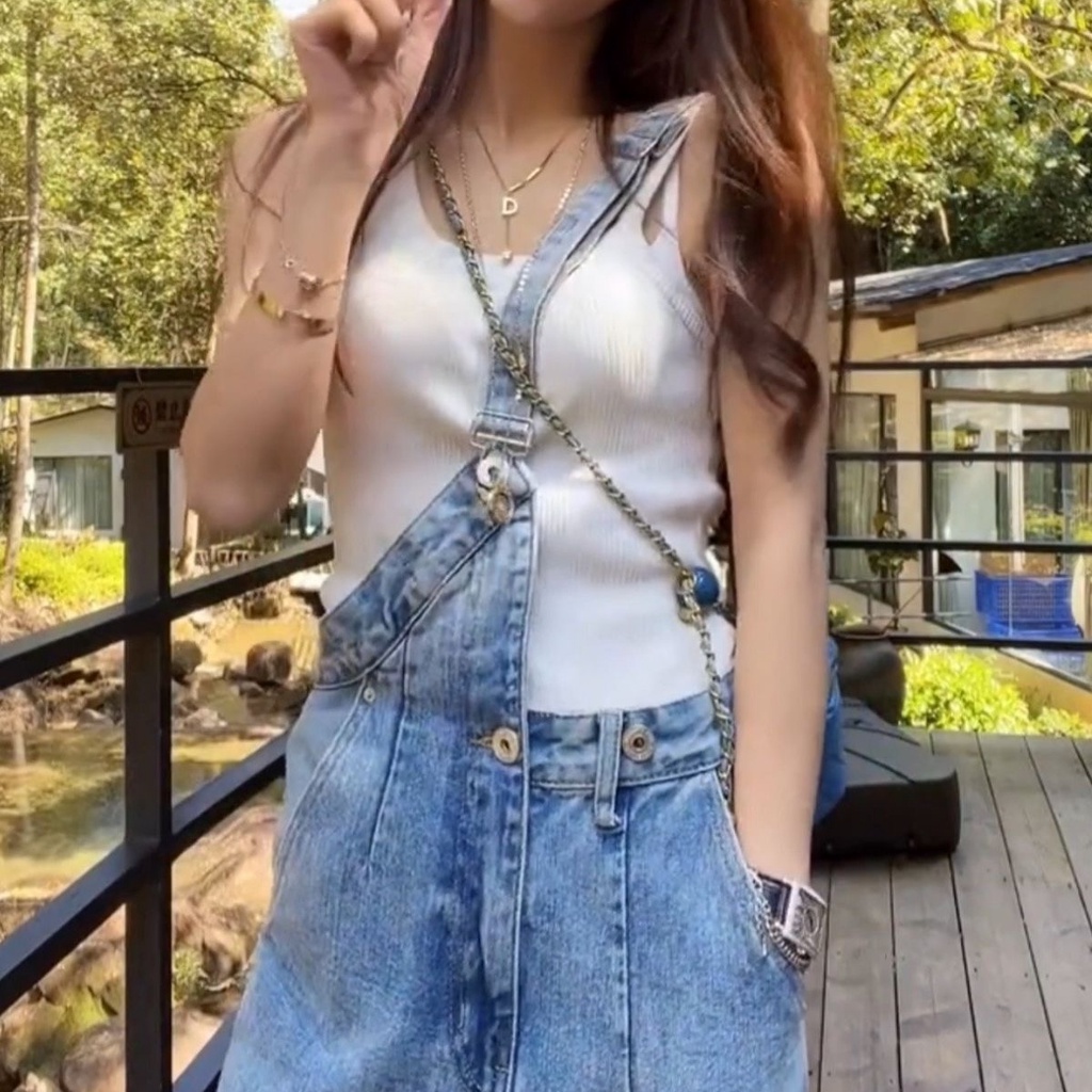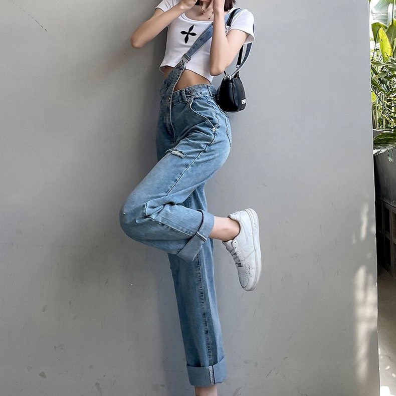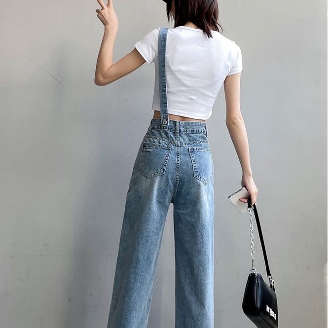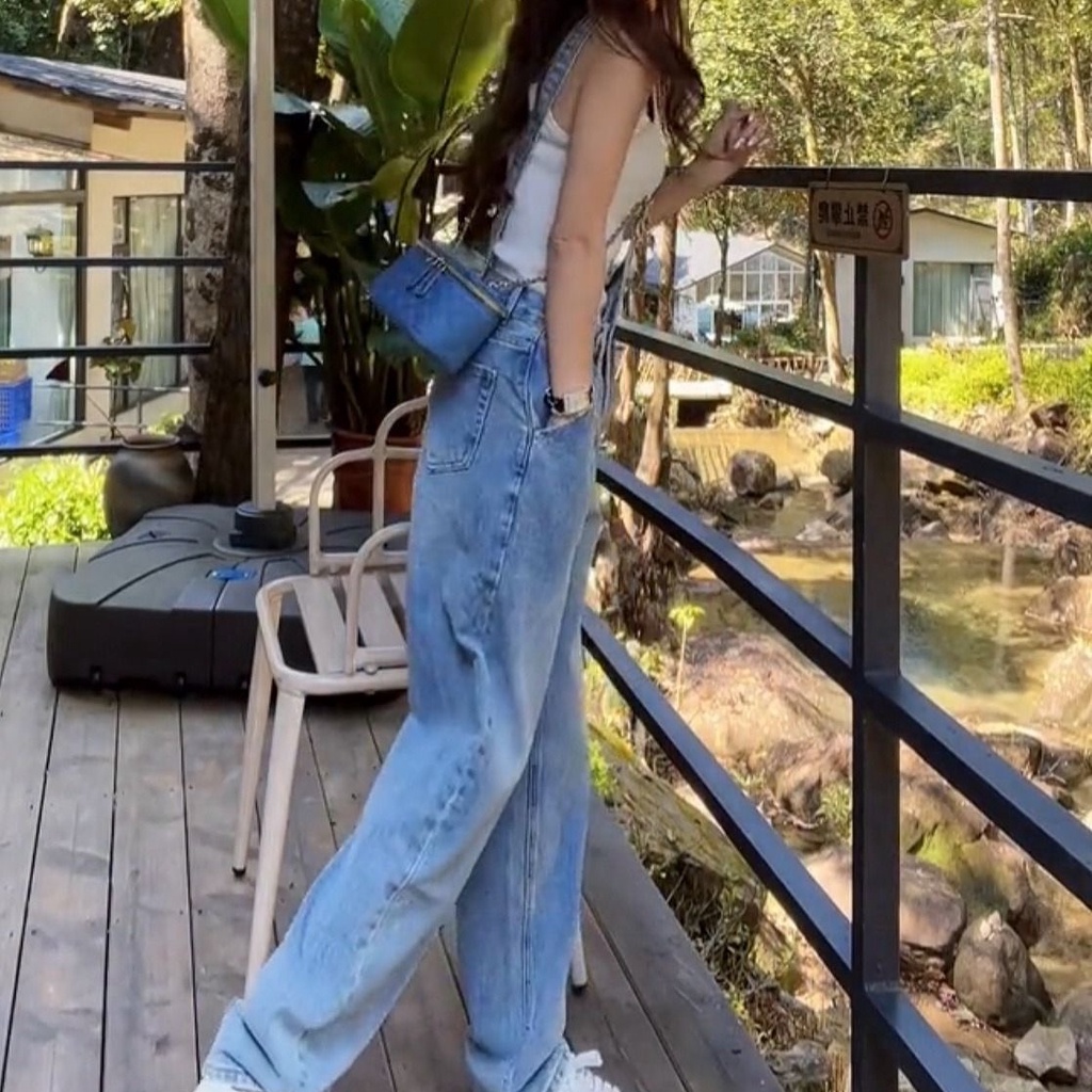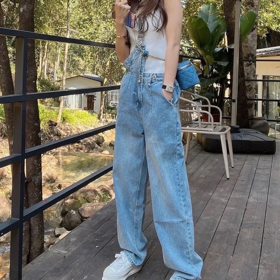JUMPSUIT JEANS WANITA DENGAN PINGGANG TINGGI, LONGGAR, DAN SATU BAHU