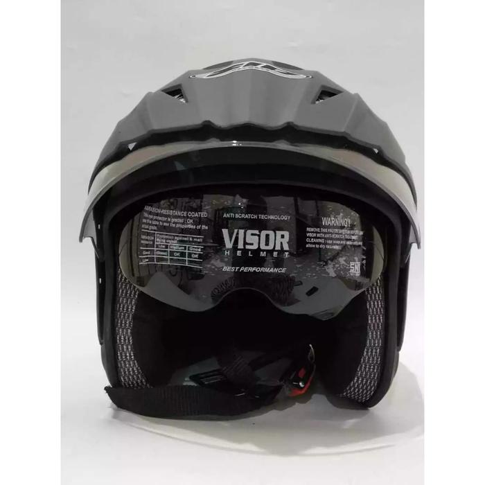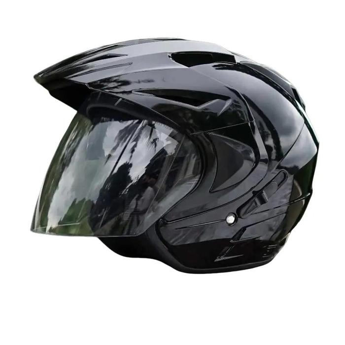 FLASH SALE HELM JP8 DOUBLE VISOR PRIA WANITA DEWASA HITAM GLOSSY POLOS HITAM GLOSSY