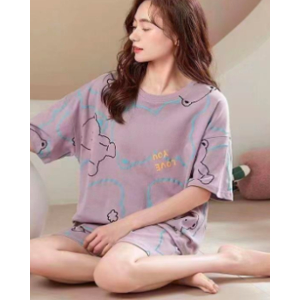 OPT P4 [FREE ONGKIR] PIYAMA SET BAJU TIDUR KAOS WANITA LENGAN CELANA PENDEK POLYESTER SPANDEK