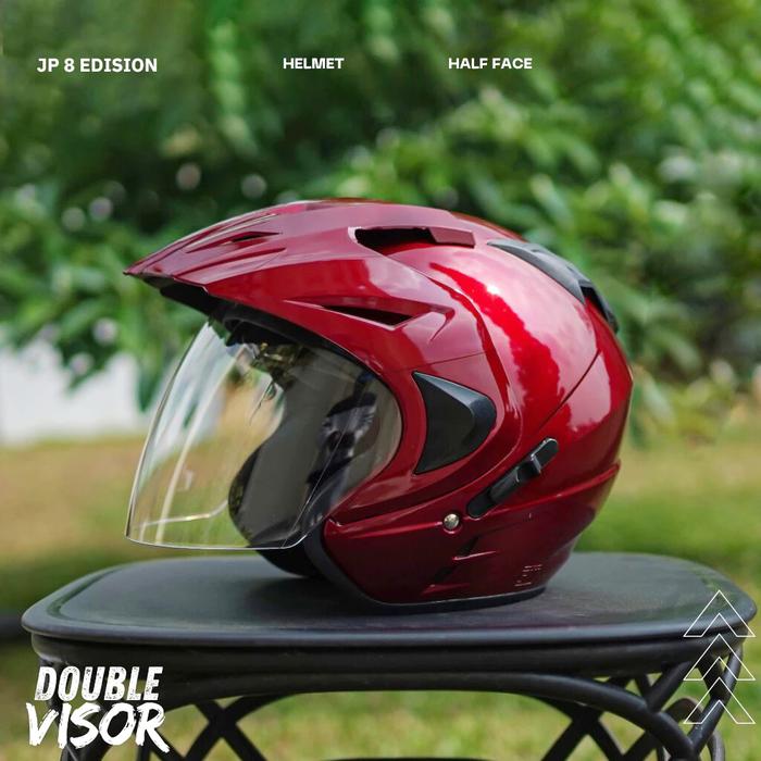 FLASH SALE HELM KEREN PRIA WANITA DEWASA JP8 DOUBLE VISOR MERAH GLOSSY SNI MOTORCYCLE HELMET HITAM GLOSSY