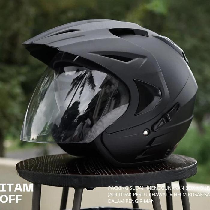 FLASH SALE HELM JP8 DOUBLE VISOR HITAM DOFF PRIA WANITA SNI FREE BUBLE WRAP HITAM GLOSSY
