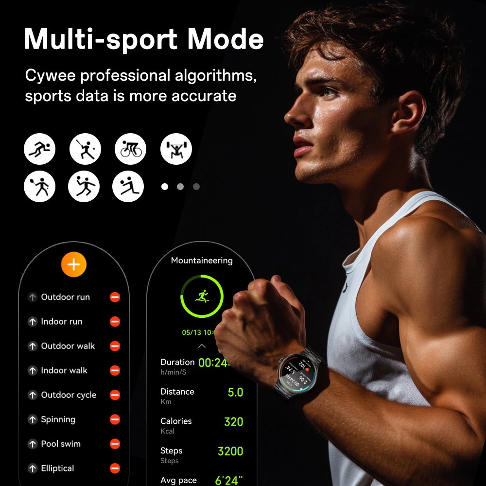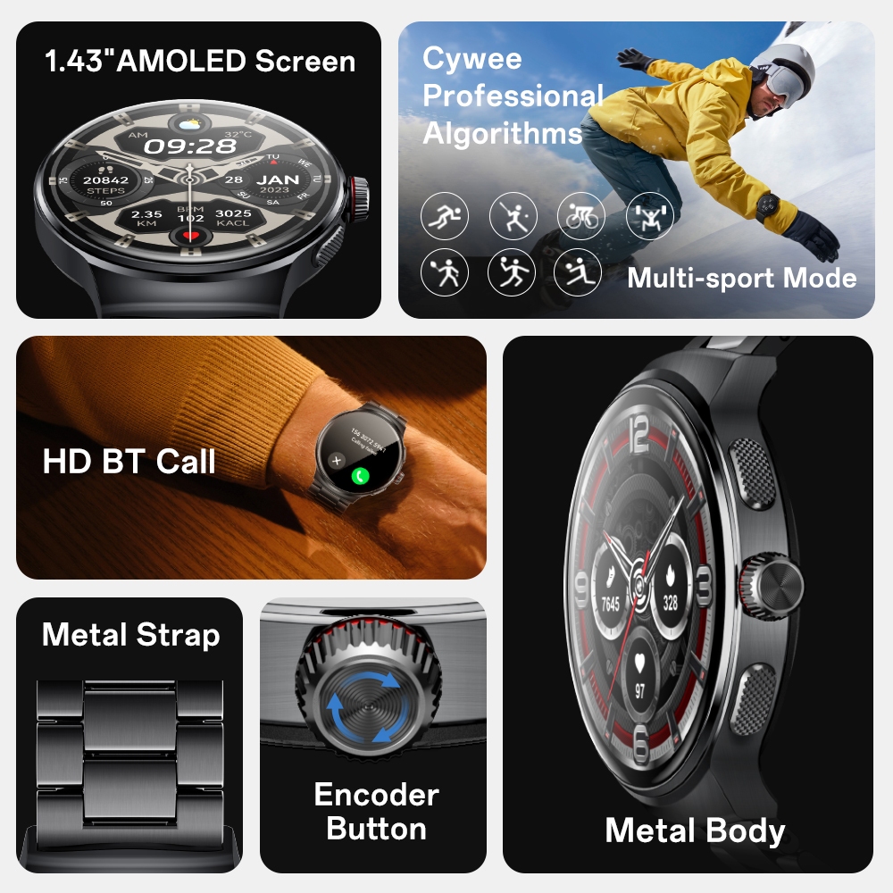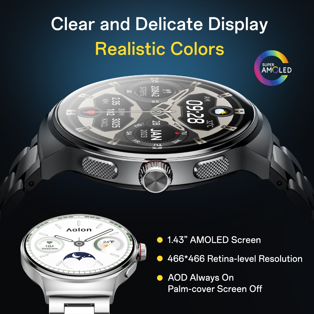 【Gift TWS】Aolon 2025 New Prime 3 Smartwatch Original Pria Cover Lock Amoled Screen Metal Case AOD Jam Tangan Pintar Blue
