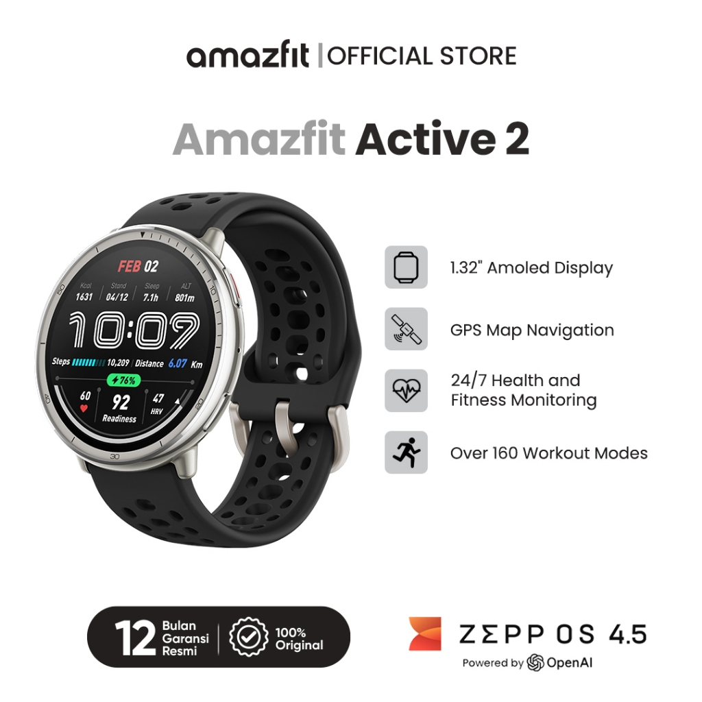 Amazfit Active 2 Smartwatch | IP68 Tahan Air | 160+ Mode Olahraga | GPS Bawaan | Notifikasi WhatsApp