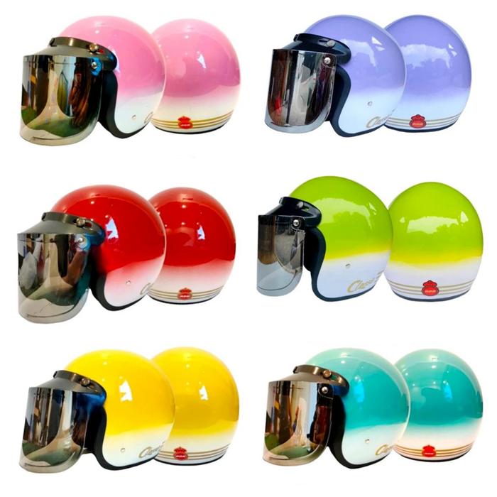 FLASH SALE HELM BOGO RETRO GRADASI WARNA PUTIH KOMBINASI HIJAU TOSCA GLOSSY PINKPUTIH CEMBUNG SMOKE